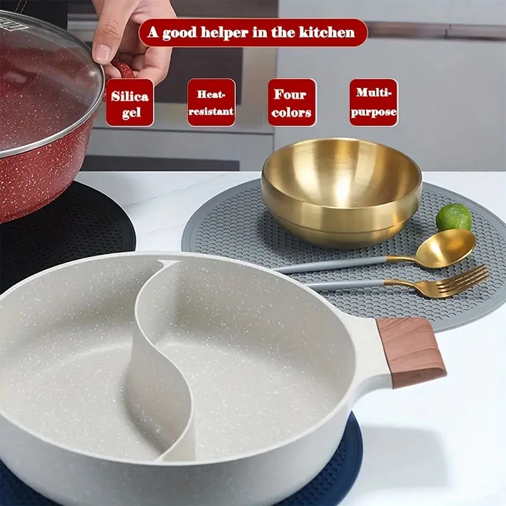 25cm Large Silicone Mat Coaster Heat Resistant Placemat Honeycomb Nonslip Pot Holder Table Mat Round Cup Mat Kitchen Accessories